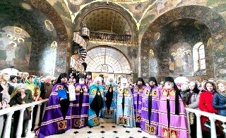 Його Блаженству співслужили намісник обителі митрополит Вишгородський і Чорнобильський Павел, митрополит Черкаський і Канівський Софрноній, архієпископ Ніжинський і Прилуцький Іриней, єпископи: Угольський Антоній, Боярський Феодосій, Діонісій (Констянтинів), Ірпінський Климент, Фастівський Даміан, а також братія та гості монастиря у священному сані.
